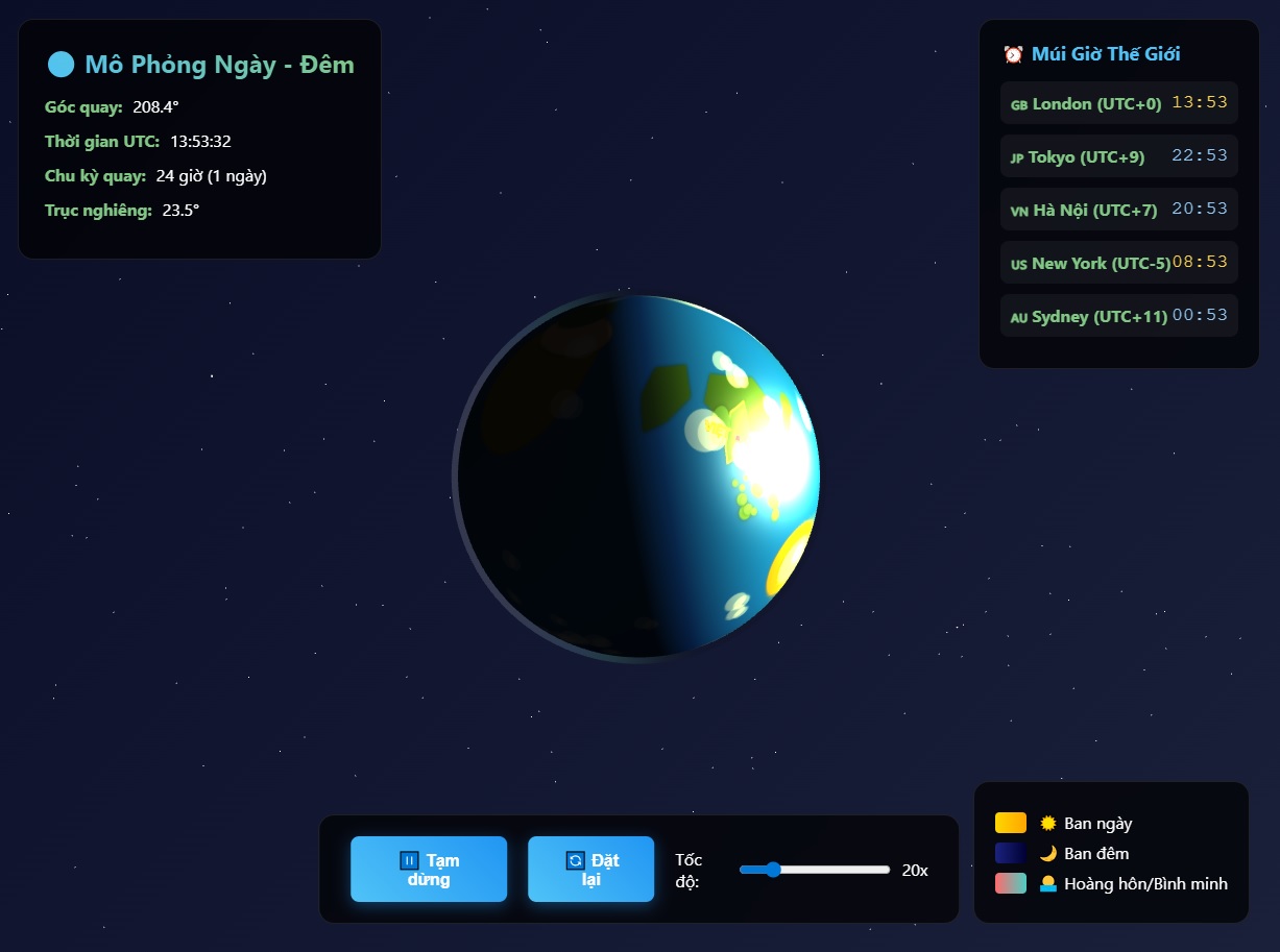🌐 Mô phỏng múi giờ trên Trái Đất