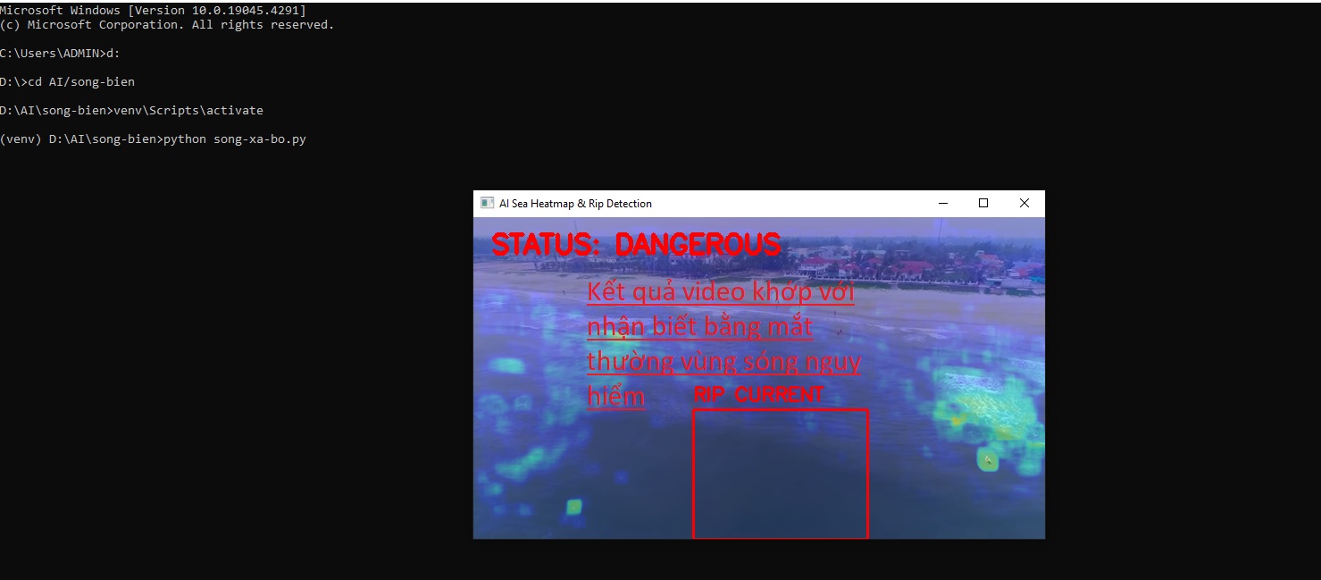 Hệ thống AI cảnh báo biển nguy hiểm được xây dựng nhằm hỗ trợ phát hiện sớm các hiện tượng nguy hiểm trên mặt biển như sóng lớndòng chảy xa bờ (rip current) thông qua phân tích hình ảnh video theo thời gian thực.