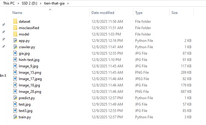 Thông qua bing_image_downloader, script sẽ tải hàng trăm ảnh USD thật và giả.